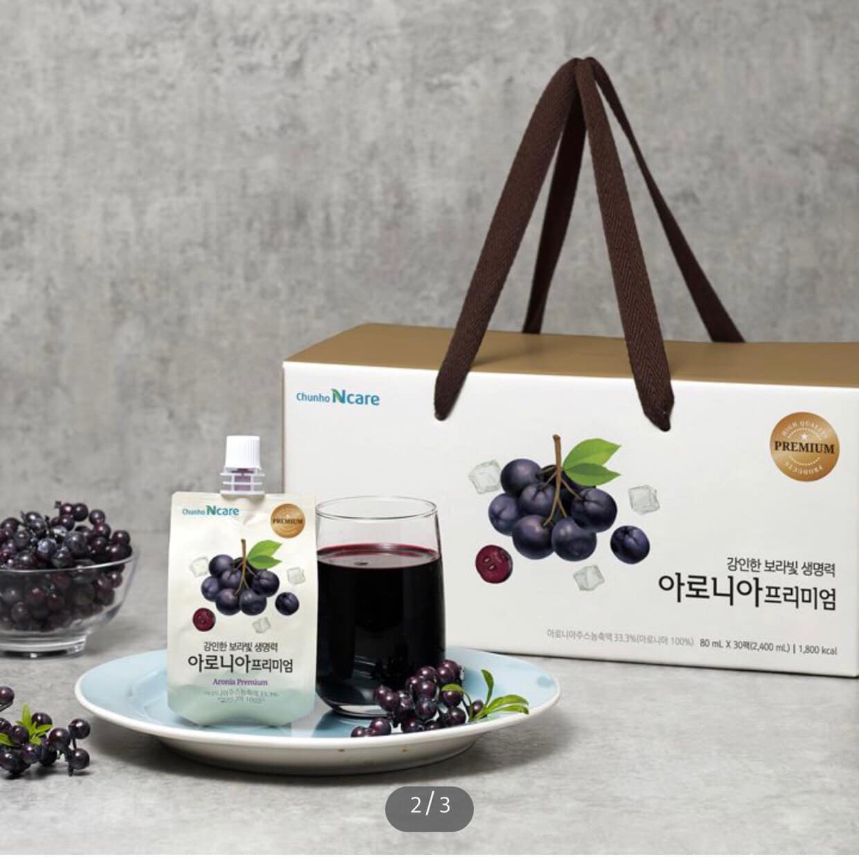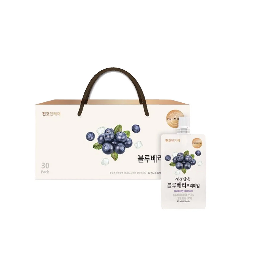 Quả việt quất – siêu thực phẩm có nguồn gốc từ Bắc Mỹ, hiện chúng được sản xuất nhiều nhất tại miền Bắc Hoa Kỳ. Nổi tiếng với hàm lượng dinh dưỡng và chất chống oxy hóa cao cùng hương vị thơm ngon được rất nhiều người ưa chuộng nên kể từ khi xuất hiện, quả việt quất đã trở thành một loại nước trái cây, thực phẩm và dược liệu phổ biến đem đến hàng loạt các lợi ích sức khỏe. Nước ép Việt quất thượng hạng Chunho Ncare chứa đến 100 quả việt quất trong mỗi gói, hàm lượng chất rắng lên đến 85 brix tạo nên vị ngon đậm đà, đặc trưng của việt quất tươi. Được người Hàn bình chọn nằm trong top sản phẩm tốt nhất của Chunho Ncare